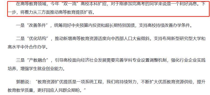然而,扩招政策也引发了一些争议。有人担心,“双一流”高校的门槛降低会导致名校光环褪色,未来就业市场的竞争将更加激烈。一些已经考上985高校的学长也表达了类似的担忧,认为扩招后找工作可能会更加“内卷”。这些声音反映了社会各界对高等教育质量的关注和期待。